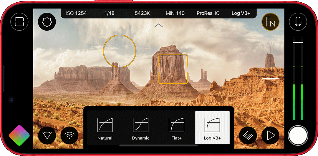 The iPhone 13 Pro and 14 Pro series can even record in 4K ProRes. Apple requires you to have at least 256GB of storage to do this. A minute of 10-bit 4K ProRes takes up about 6GB, so 256GB translates into 42 minutes of ProRes recording, minus the amount of memory occupied by apps, photos, etc. Just about, not quite, enough for documentary shooting, as long as you keep in mind that there’s no SD card to swap. When filled, you have to download the phone’s contents wirelessly via AirDrop before you can continue shooting.